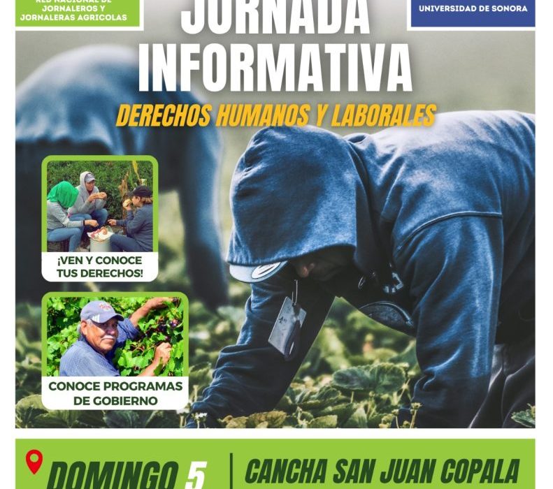Con el objetivo de que jornaleros y jornaleras de la Costa de Hermosillo, Sonora, conozcan sus derechos laborales, la Red Nacional de Jornaleros y Jornaleras Agrícolas, a través del profesor investigador José Eduardo Calvario, con el respaldo institucional del Departamento de Sociología y Administración pública de la universidad de Sonora, invitan a la comunidad jornalera