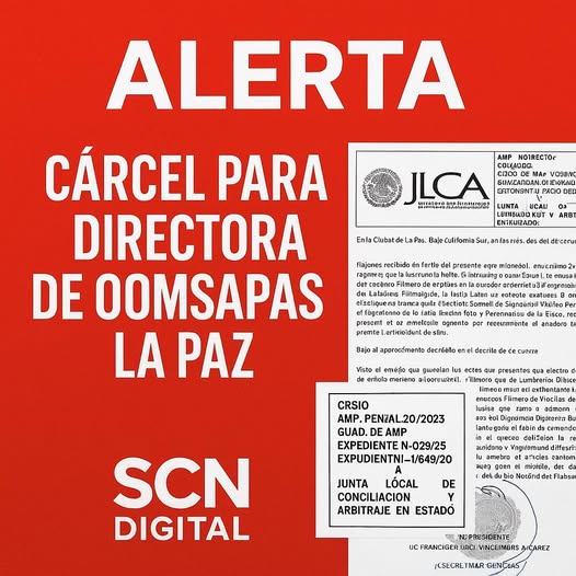 Un Juzgado Federal en Baja California Sur ha dictado una medida de apremio sin precedentes contra la titular del Organismo Operador Municipal del Sistema de Agua Potable, Alcantarillado y Saneamiento de La Paz (OOMSAPAS), Zulema Lazos Ramírez. La resolución, emitida por el Juzgado Primero de Distrito, ordena su arresto por un periodo de 36 horas