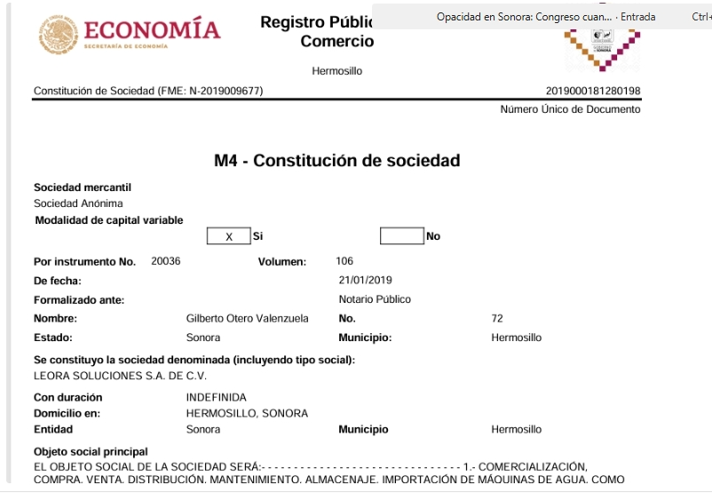 En resumen, el representante de Leora Soluciones es una figura con vínculos en el sector público y privado. Pero hay algo más: al inicio de esta indagatoria periodística, se buscó a dicha empresa en el Registro Público del Comercio que depende de la Secretaría de Economía Federal y se detectó la existencia de dicha empresa (se cuenta con las pruebas).
