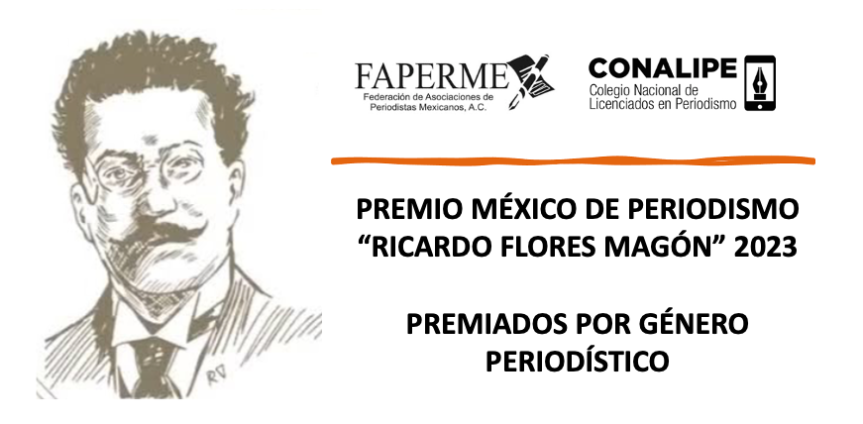 La Federación de Asociaciones de Periodistas Mexicanos y el Colegio Nacional de Licenciados en Periodismo dan a conocer los nombres de los periodistas que fueron galardonados, de acuerdo con la decisión del H. Jurado Calificador, con el Premio México de Periodismo “Ricardo Flores Magón” 2023 por Géneros Periodísticos.