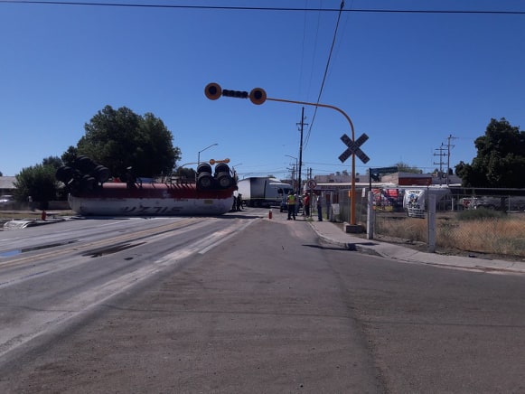 Al llegar a la confluencia de la calle Ferrocarril que corre paralela a las vías del tren y se intersecta con la calle Anaya, el trailer avanzó con velocidad a pesar de que ya venía el tren, pero fue impactado por el tranvía justo en donde se ensamblan ambos remolques y no alcanzó a cruzar los rieles por completo.
